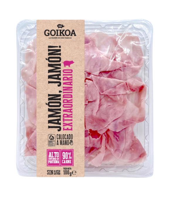 Deléitate con los nuevos Extraordinarios de Jamón Cocido Extra Goikoa con un 90% carne y alto contenido en proteínas. Un producto de máxima calidad, con sello Bienestar Animal, en un nuevo y mejorado formato de finas lonchas colocadas a mano y listas para seducir los paladares más exigentes.